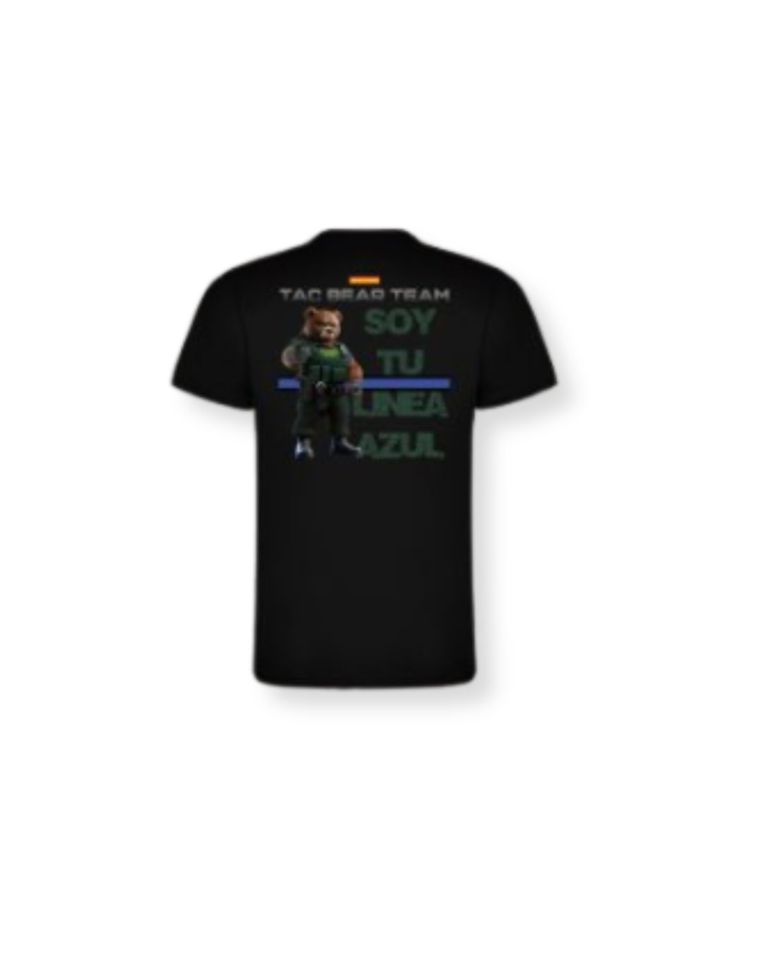 Con estampado delantero con escudo TAC BEAR TEAM y bandera de España, y parte trasera con ilustración completa y mensaje “SOY TU LÍNEA AZUL”.